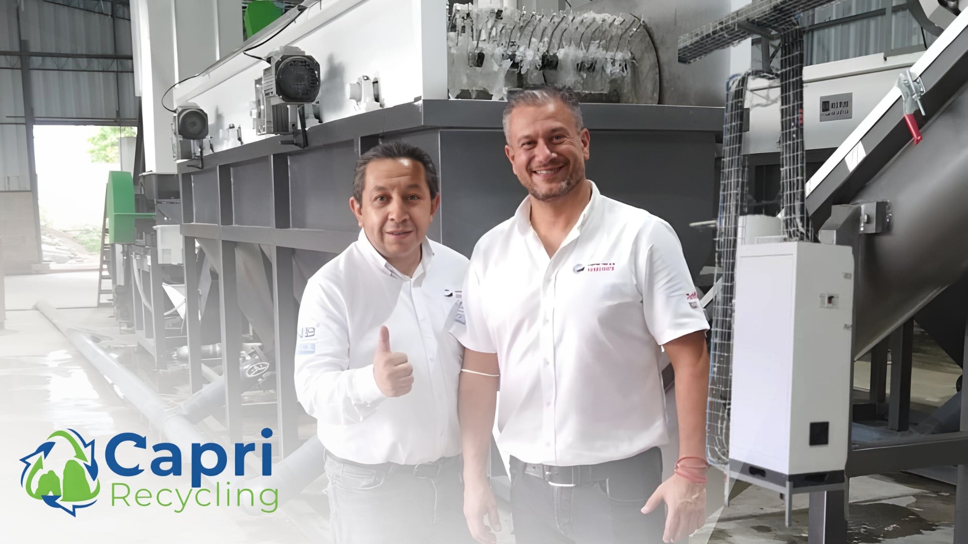 La planta Capri en Ateos, San Salvador, procesa y recupera plásticos mediante limpieza, molienda, desecado y fusión. Produce plástico flexible negro para suelos, techos y agricultura, con el objetivo de reutilizar materiales y ser ambientalmente amigable.