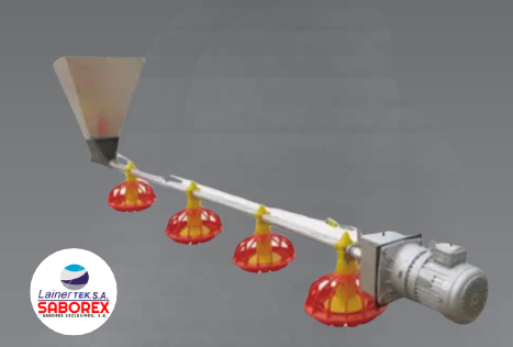 de la tolva a cada plato de alimentación para garantizar el consumo del pollo de engorde y controlado automáticamente por el